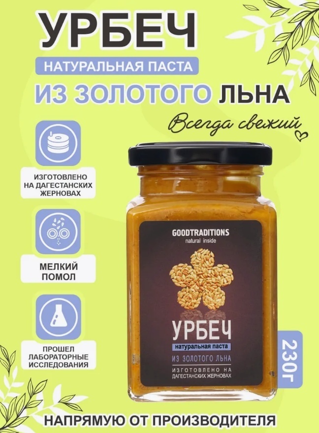 Урбеч из ЗОЛОТИСТОГО Льна GOODTRADITIONS, стекло, 230г.