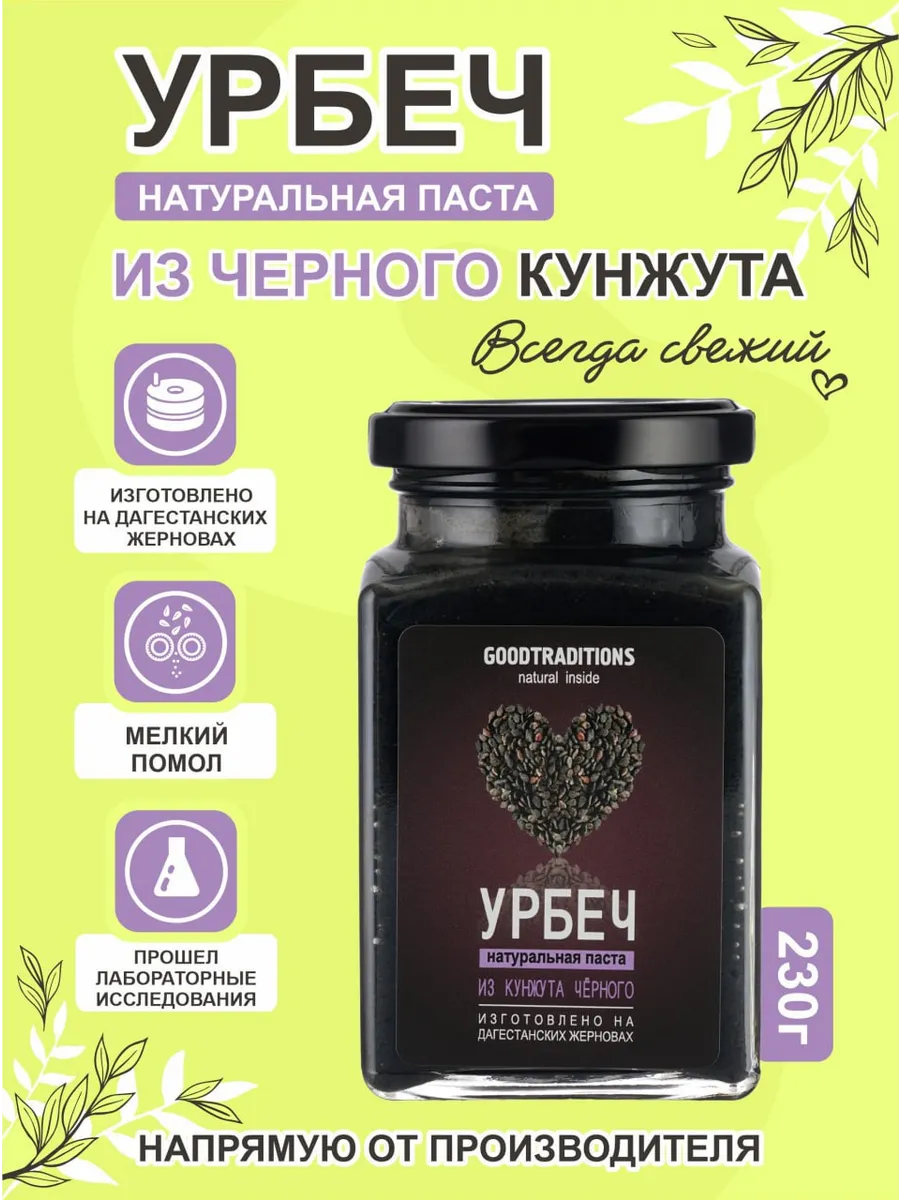 Урбеч от компании Добрые Традиции – это паста из семян кунжута черного, перемолотых на каменных дагестанских жерновах. Помол получается максимально мелким, сметанообразным. Благодаря тому, что продукция не подвергается термической обработке выше 40 градусов, в ней полностью сохраняются натуральная польза и энергия.