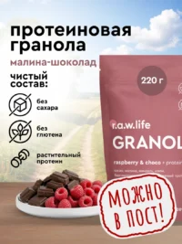 • R.A.W. LIFE Гранола протеиновая Малина-Шоколад 220 гр. ₸ 3,280.00