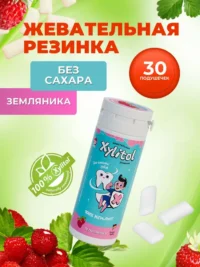 Жевательная резинка XYLITOL со вкусом ЗЕМЛЯНИКИ Детская, 30 драже в тубусе
