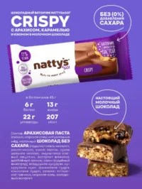 NATTYS&GO Crispy Батончик «Арахис, карамель и изюм в молочном шоколаде» 45 гр.