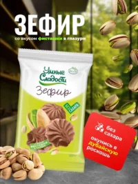 Зефир «Умные сладости» со вкусом фисташки в молочно-шоколадной глазури 180гр.