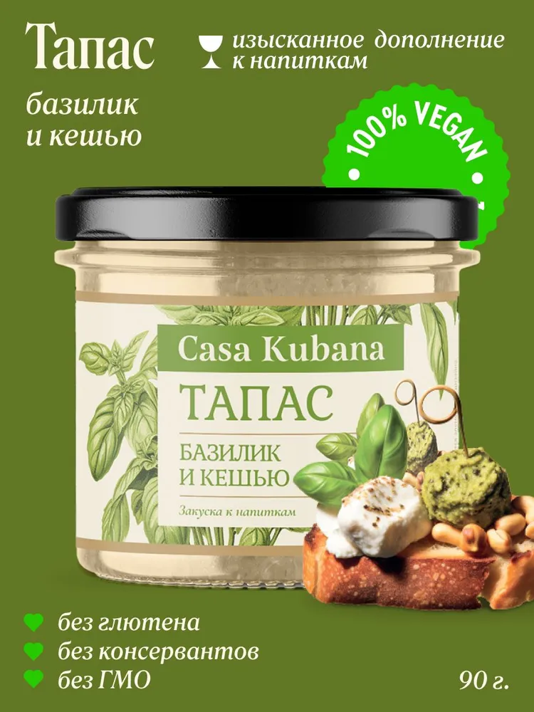В составе этого тапаса ароматная паста из свежего зеленого базилика и нежных орехов кешью, с добавлением кедровых орешков. Это готовая гастрономическая магия для вашего стола с ароматами Средиземноморья. Просто откройте банку, и перед вами идеальный компонент к хрустящему багету, бокалу вина или сырной тарелке.