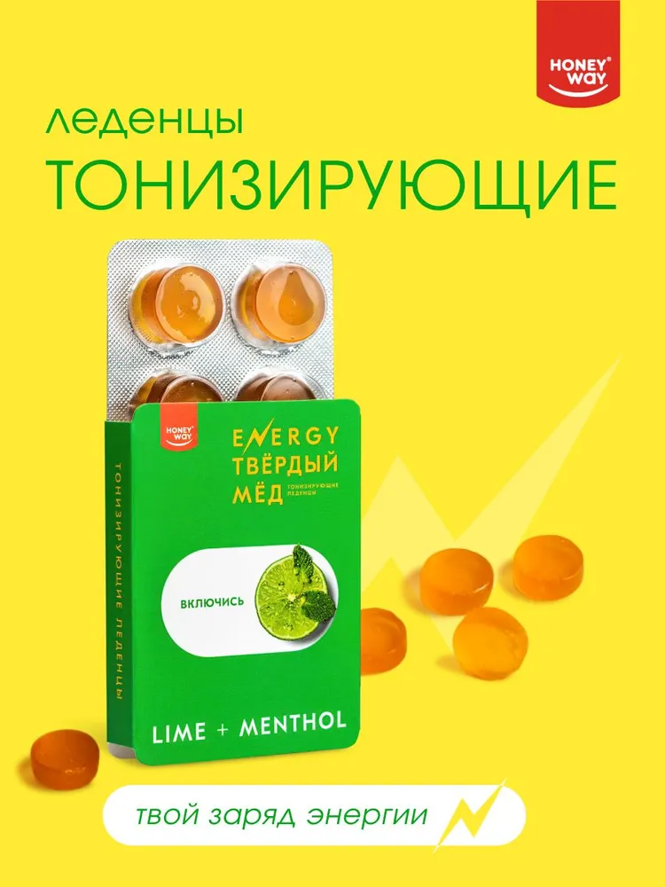 Твёрдый мёд Леденцы ENERGY Lime menthol 18 гр.
