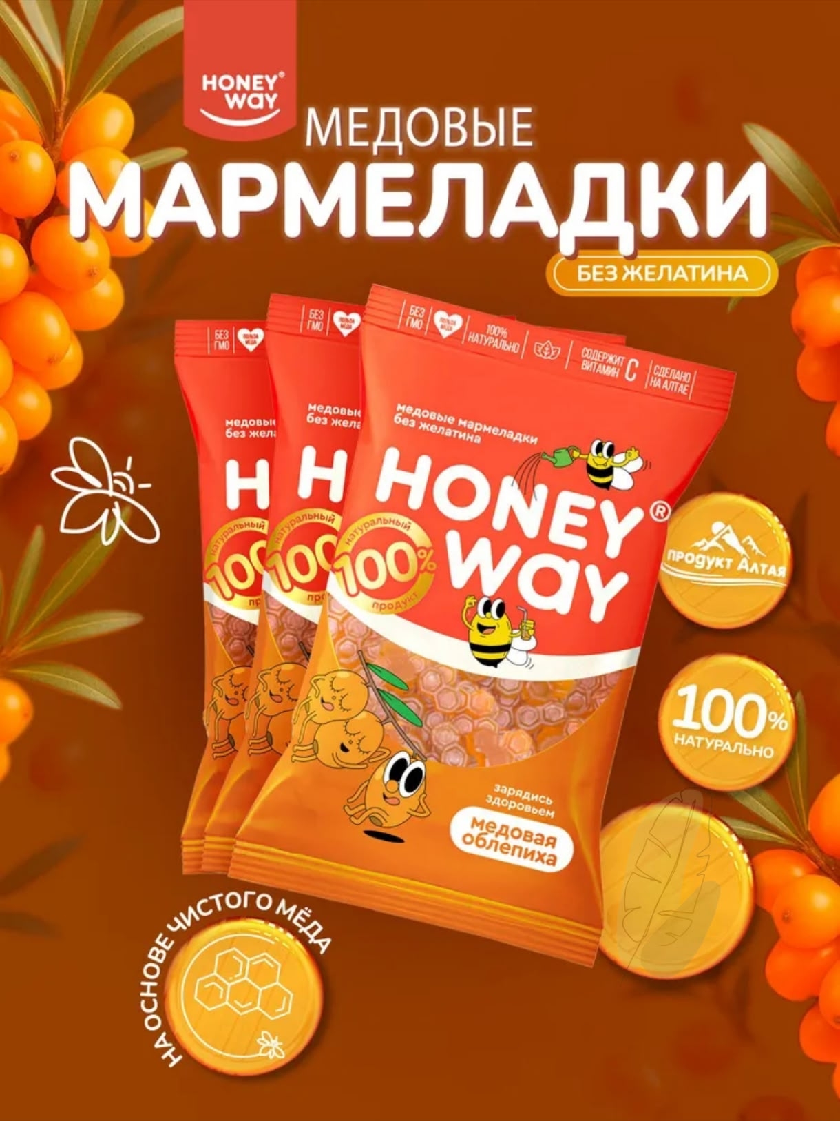 Твёрдый мёд Мармеладки без желатина со вкусом облепихи 75 гр.