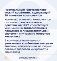 Способствует увеличению численности собственной полезной микрофлоры кишечника, восстановлению микробного баланса, снижению проницаемости и воспалений кишечного эпителия, стимулирует активность иммунитета.