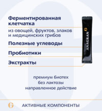 Комплекс содержит 8 штаммов живых бифидо- и лактобактерий, физиологичных для кишечника взрослого человека. Обладает высокой способностью к активному воспроизводству и колонизации эпителия, проявляет высокую антагонистическую активность по отношению к патогенным микроорганизмам, защищен технологией микрокапсулирования от агрессивных факторов пищеварительной среды.