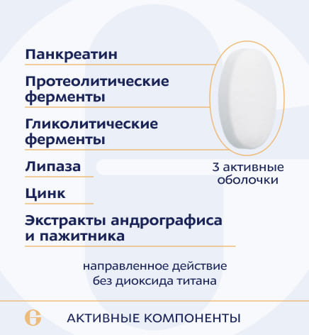 Протеаза, пепсин, трипсин и химотрипсин – улучшают пищеварение, оказывают выраженное противовоспалительное действие, вызывают уменьшение панкреатической секреции и обеспечивают «функциональный покой» поджелудочной железы.