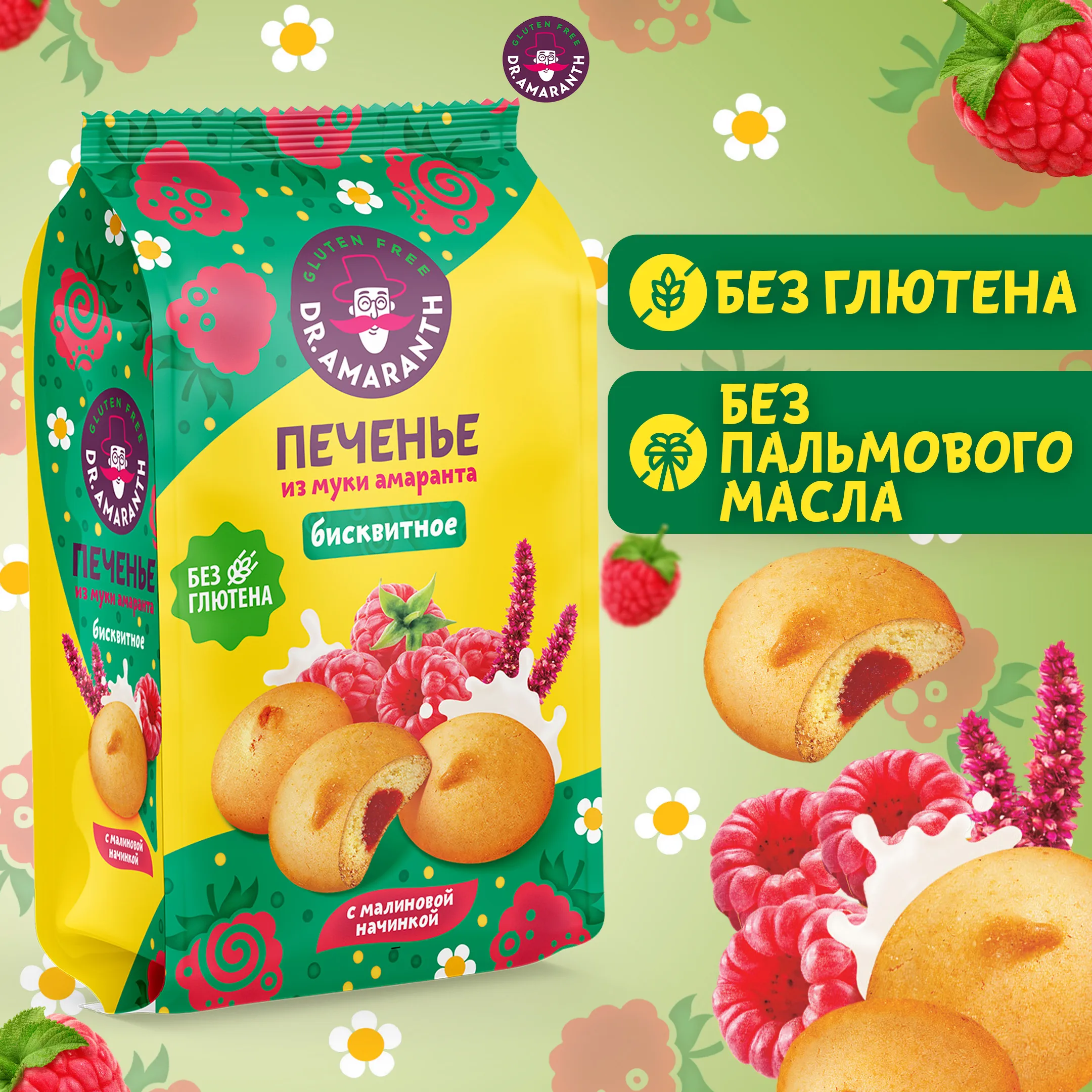 DR.AMARANTH Печенье бисквитное с малиновой начинкой 200 гр.