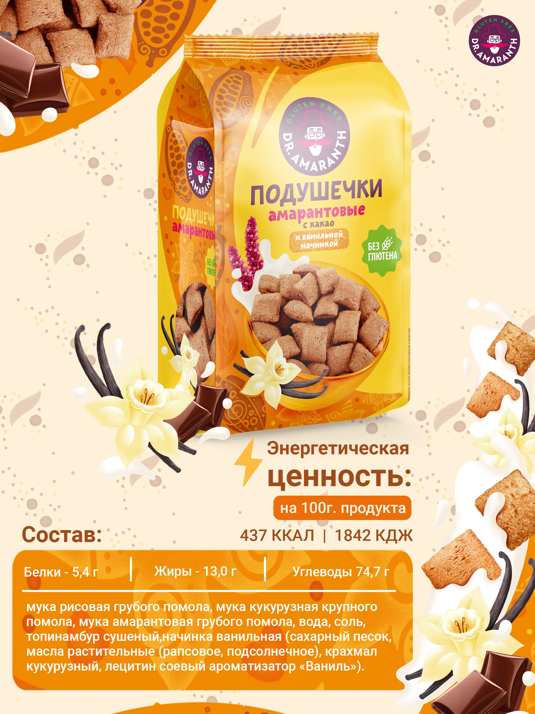 DR.AMARANTH Подушечки амарантовые со вкусом ванили 100 гр.