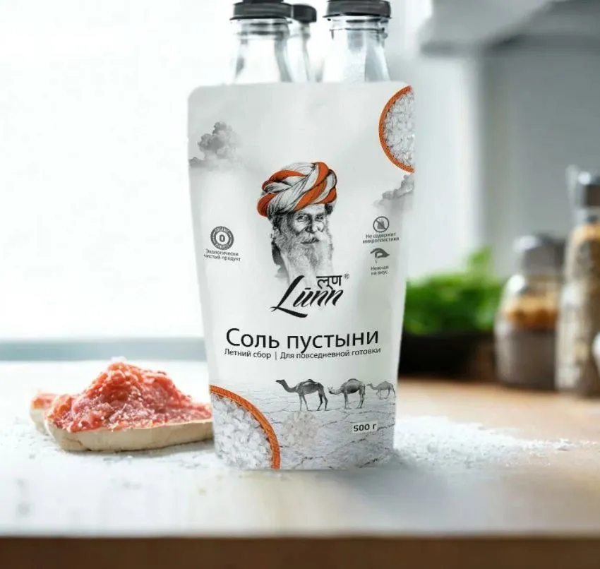 Великая пустыня Индии, известная как пустыня Tap, находится в штате Раджастхан. Это девятая в мире по величине субтропическая пустыня.Глубоко под её горячими сверкающими песками образуются большие водоёмы, питаемые осадками лишь в сезон дождей. Вода просачивается вниз, смешивается с богатой минералами солью пустыни, образуя густую соляную смесь.Эту смесь выкачивают, а затем высушивают на солончаках, создавая дюны одного из чистейших видов соли. Из года в год сезоны дождей питают эти водоёмы, поддерживая этот природный цикл. Собранные вручную кристаллы соли очищают, упаковывают и готовят к отправке во все уголки земли.Соль пустыни является сертифицированной экологически чистой продукцией ;в отличие от морской соли, не содержит микропластик ; не содержит антислеживающего агента, способного образовывать при разложении синильную кислоту ; не содержит компонентов животного происхождения ; не содержит глютен .Соль пустыни Lunn собирают дважды в год. Соль, собранная летом, очень быстро высушивается под жарким солнцем, в результате образуя коричневатые кристаллы.Продукт упакован в дой-пак. Соль мелкого помола.