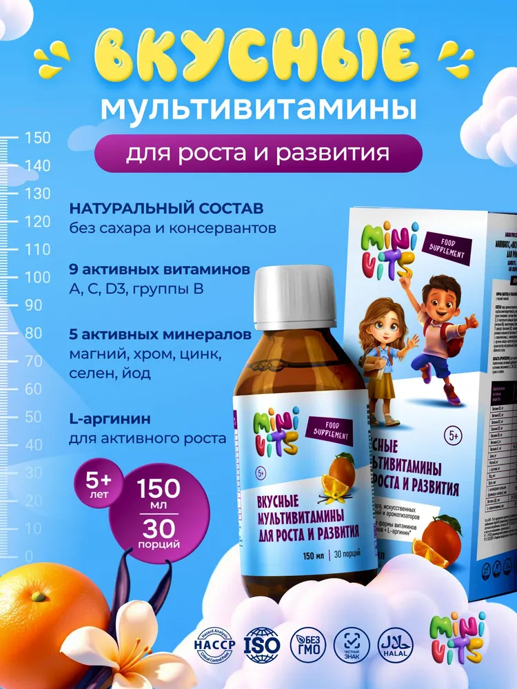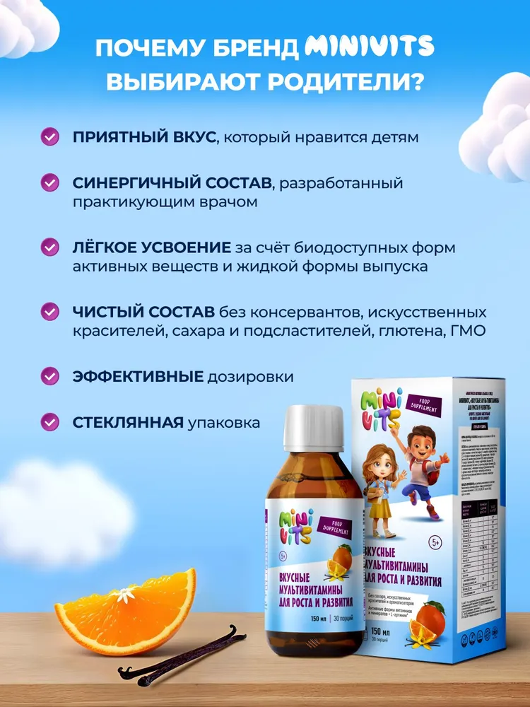 Minivits Мультивитамины для роста и развития со вкусом апельсина 150 мл