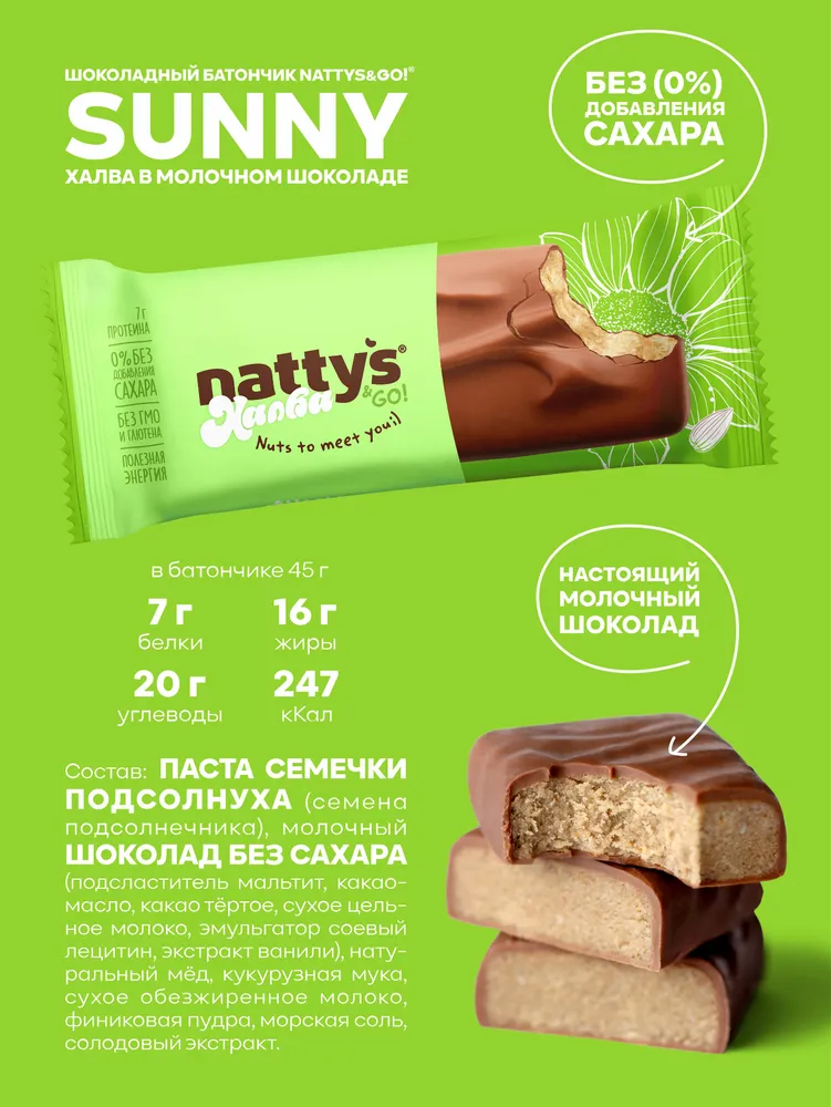 NATTYS&GO Sunny Батончик «Халва в молочном шоколаде» 45 гр.