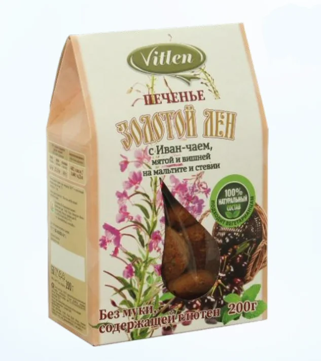 Vitlen Золотой Лён Печенье с Иван чаем, мятой и вишней на мальтите и стевии 200гр.